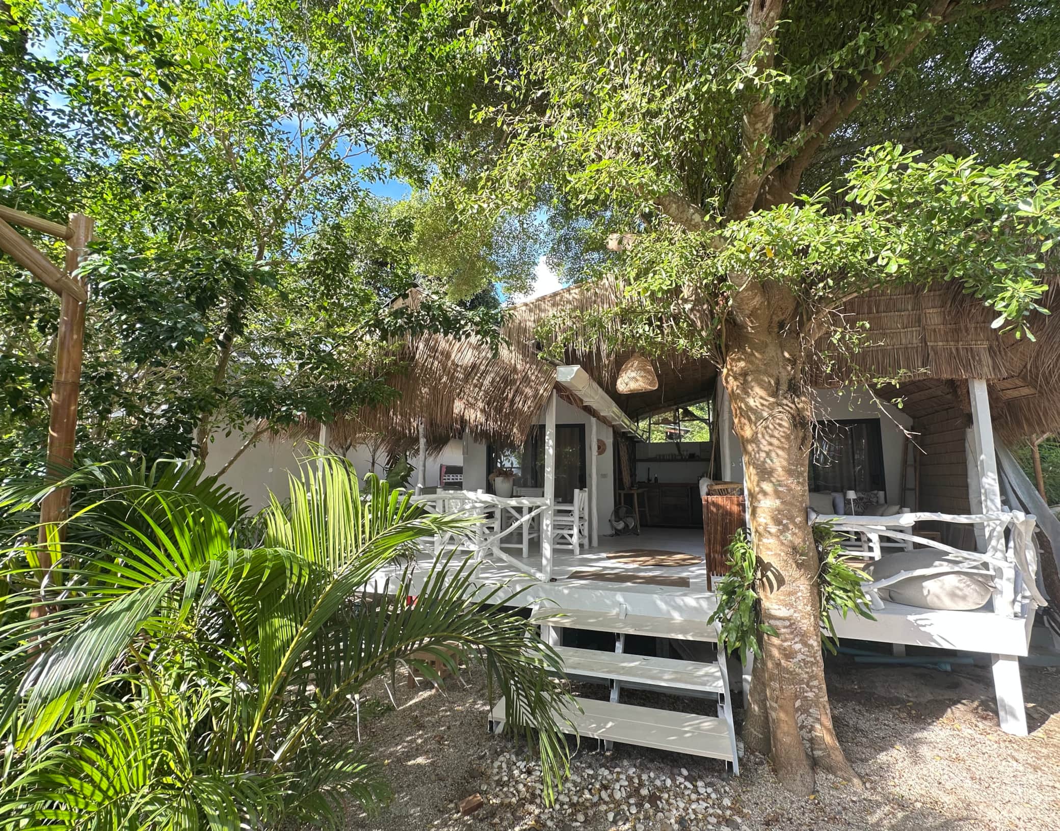 Sama Beach Resort is an exclusive beachfront resort with five bungalows in a stunning location directly on the beach. Our infinity pool, bar, massage services, and (from March 1, 2026) yoga classes provide the perfect setting for relaxation and rejuvenation. Nestled amidst the natural beauty of the surroundings, we aim to offer our guests unforgettable experiences surrounded by nature. Our Oasis bungalow features two bedrooms with en-suite bathrooms and a beautiful, large covered terrace with a large table, four chairs, a sofa, a hammock chair, and a kitchenette (without a cooktop) including a sink, refrigerator, Nespresso machine, kettle, and dishes.